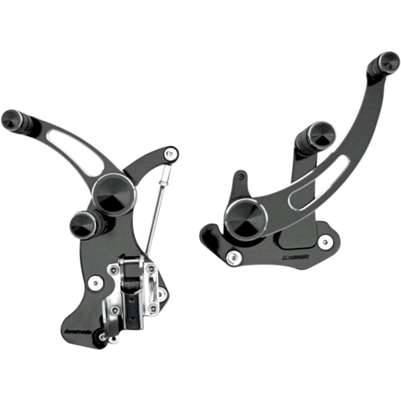 ACCUTRONIX Forward Control Slotted Black '14+ FLH FC405-SSNCNC-machined from 6061 T-6 aluminum, 3/4" mounting plates for superior strength, Feature sealed bearings on the pivot points for smooth operation and no maintenance, Assembled with chrome hardware,