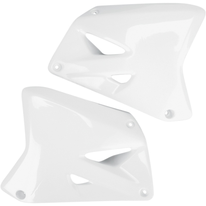 UFO Radiator Shrouds White RM SU03987-041OEM matches stock bike colors, Easy bolt-on installation, Made in Italy MATERIAL: