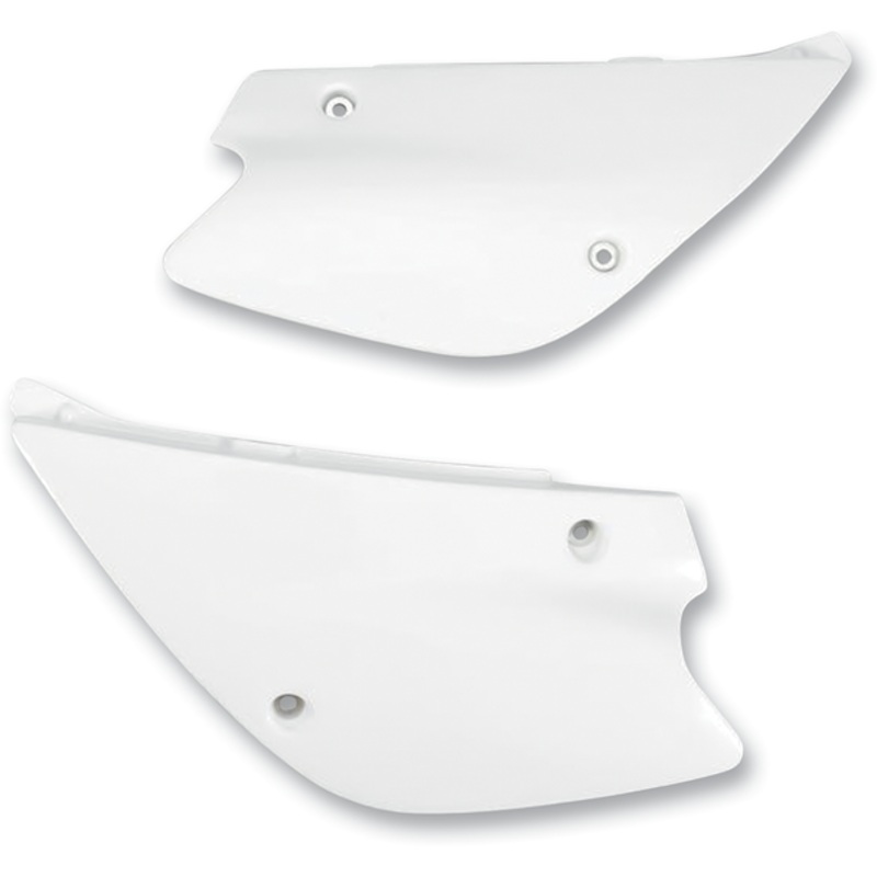 UFO Side Panels White KX 85 KA03714047OEM matches stock bike colors, Pre-drilled for easy bolt-on installation, Made in Italy MATERIAL: