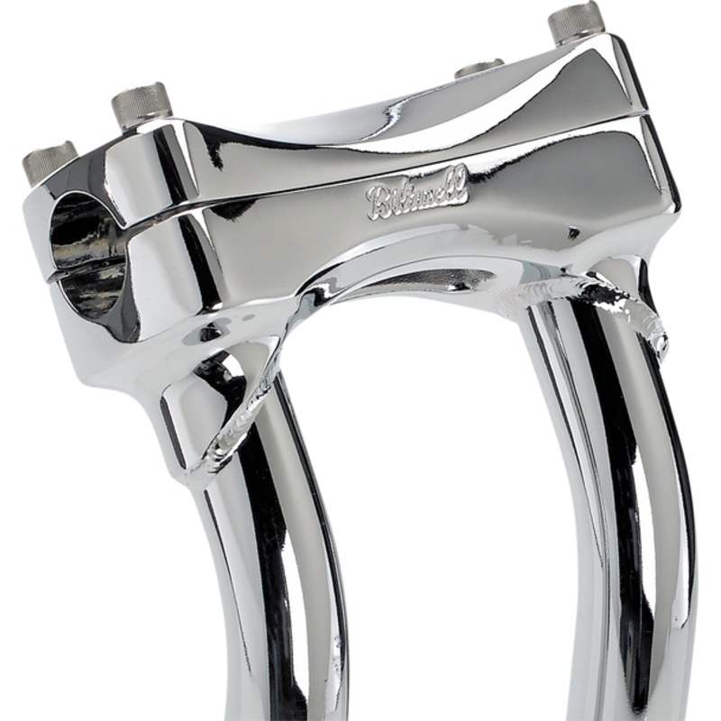 BILTWELL Risers Murdock Oversized Pullback 10" Chrome 6414-105-10Investment-cast one-piece steel bar clamp accepts 1-1/8-inch O.D. handlebars, 0.120-inch (3mm) wall x 1" O.D. 4130 chromoly uprights, CNC lathe-turned mounting bases accept 1/2-13 t.p.i. stoc