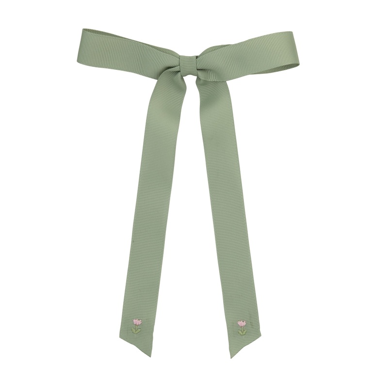 25S-Tulip embroidered long bow-Olive