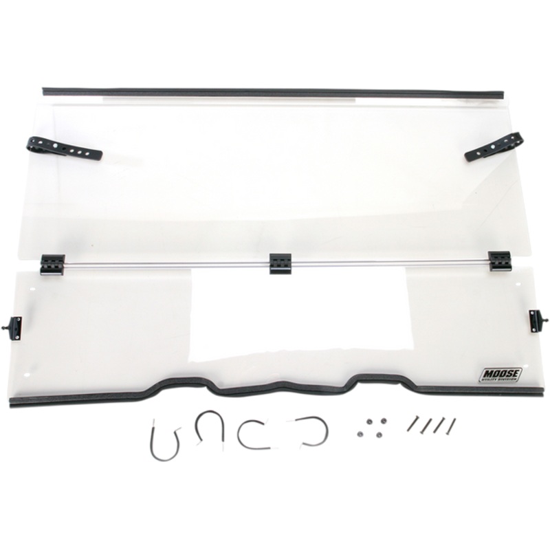 MOOSE UTILITY Full Folding Windshield Ranger LEMA100-0014Made from premium .177" thick polycarbonate shield, Centrally hinged for ventilation, Tool-less operation, Mounts to the roll bar using stainless steel rubber coated mount straps, Windshields feature
