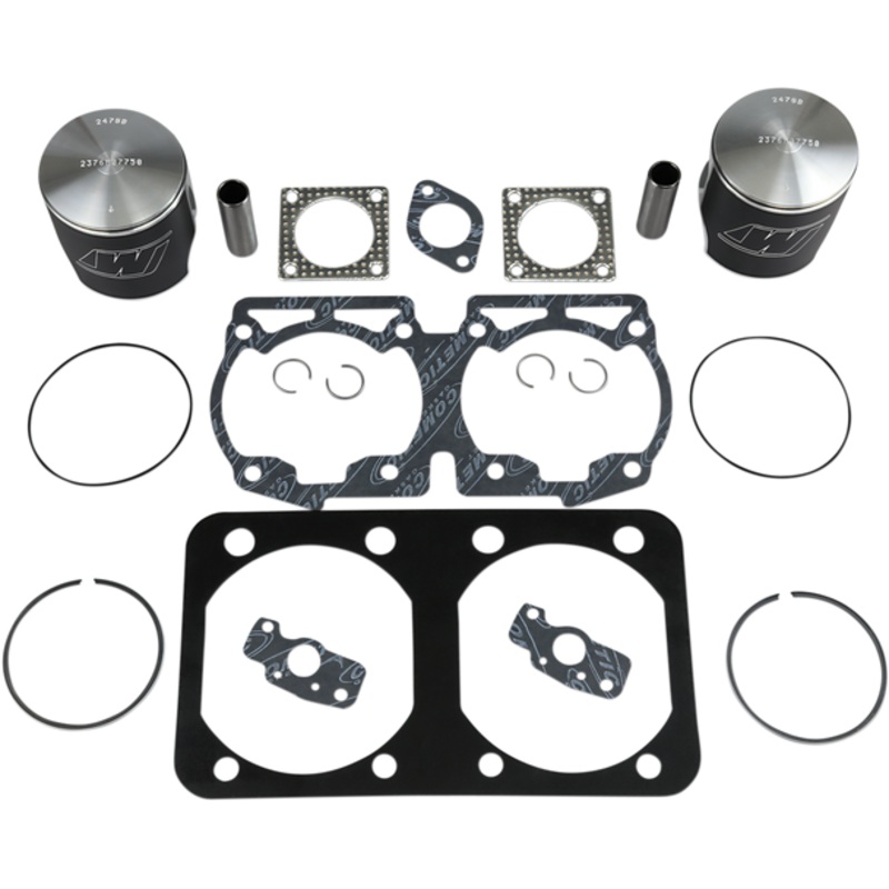 WISECO Piston Kit Ski Doo SK1234Most Wiseco 2-cycle pistons are forged from high-silicone bar stock, Greater strength and lower expansion at high temperatures, Complete piston kits include High-Performance forged pistons, rings, wrist pins, circlips and to