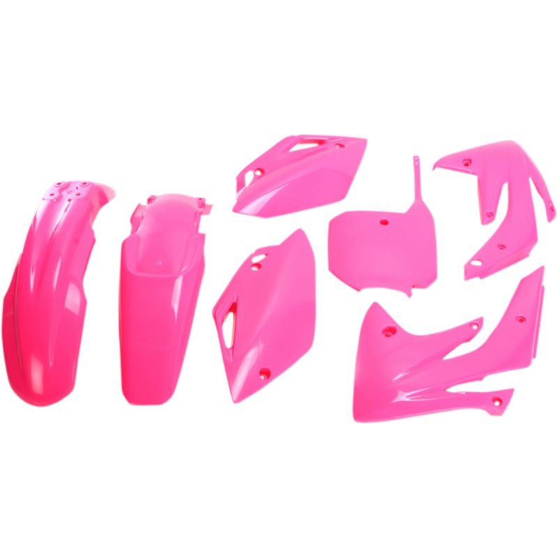 UFO Replacement Body Kit Fluorescent Pink CRF150R HOKIT111-PPre-drilled pieces mount easily to stock locations, Body kit includes front and rear fender, radiator covers, side panels and front number plate; OEM matches stock bike color, Easy bolt-on install