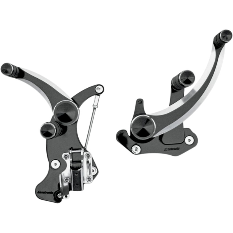 ACCUTRONIX Forward Control Diamond Black '14+ FLH FC405-SINCNC-machined from 6061 T-6 aluminum, 3/4" mounting plates for superior strength, Feature sealed bearings on the pivot points for smooth operation and no maintenance, Assembled with chrome hardware,