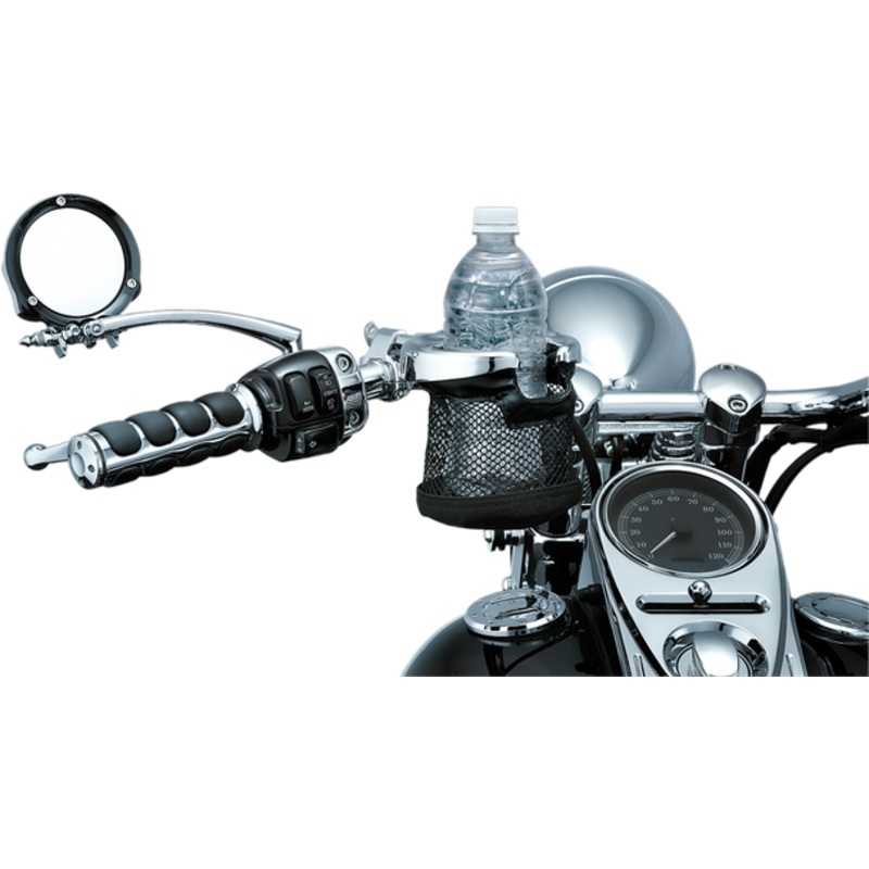 KURYAKYN Drink Holder w/ Basket Universal 1-1/4" Handlebars Chrome 1475Clamps to the handlebar or the clutch/brake perch and holds an average-size cup, can, bottle or mug, Quick-detach mount leaves a simple clamp when not in use, Clamp allows beverage to s