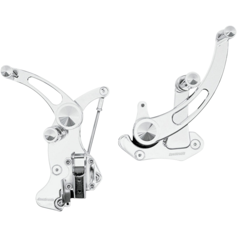 ACCUTRONIX Forward Control Slotted Chrome '14+ FLH FC405-SSCCNC-machined from 6061 T-6 aluminum, 3/4" mounting plates for superior strength, Feature sealed bearings on the pivot points for smooth operation and no maintenance, Assembled with chrome hardware