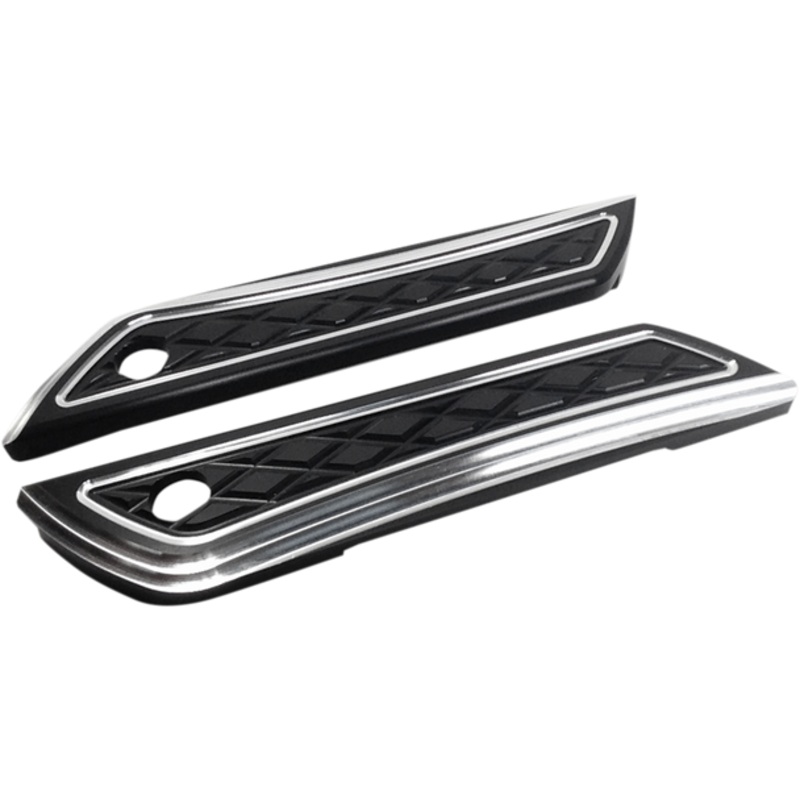 EDDIE TROTTA DESIGNS Saddlebag Hinge Covers Black TC-983BReplace stock faceplates on Touring models with hard bags, Feature a back-cut design with diamond-cut center, Retain all OEM functions, Made in the U.S.A. BASE FINISH: