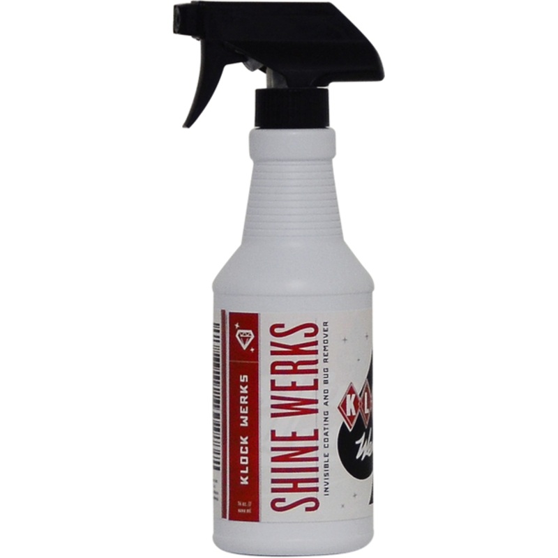 KLOCK WERKS Shine Werks Cleaner U.S. fl 16 oz. SHINEWERKS16-12Recommended cleaner designed specifically for Klock Werks Flare Windshield, Repels dust, dirt, smudges and bugs, Repels water, prevents fogging and is non-abrasive, Can also be used on entire bi