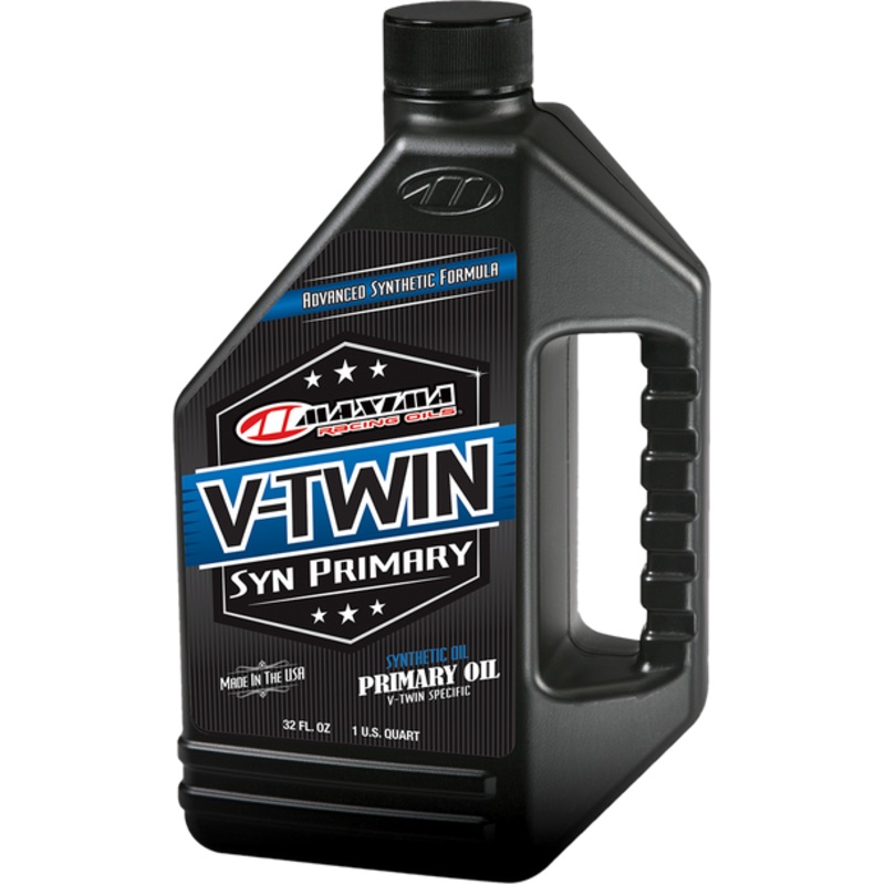 MAXIMA RACING OIL V-Twin Synthetic Primary Oil 1 U.S. quart 40-05901A high-quality, full-synthetic ester-based motorcycle gear oil formulated for high-performance transmissions and primary chain cases, Designed for use in all 84-and-newer H-D models with w