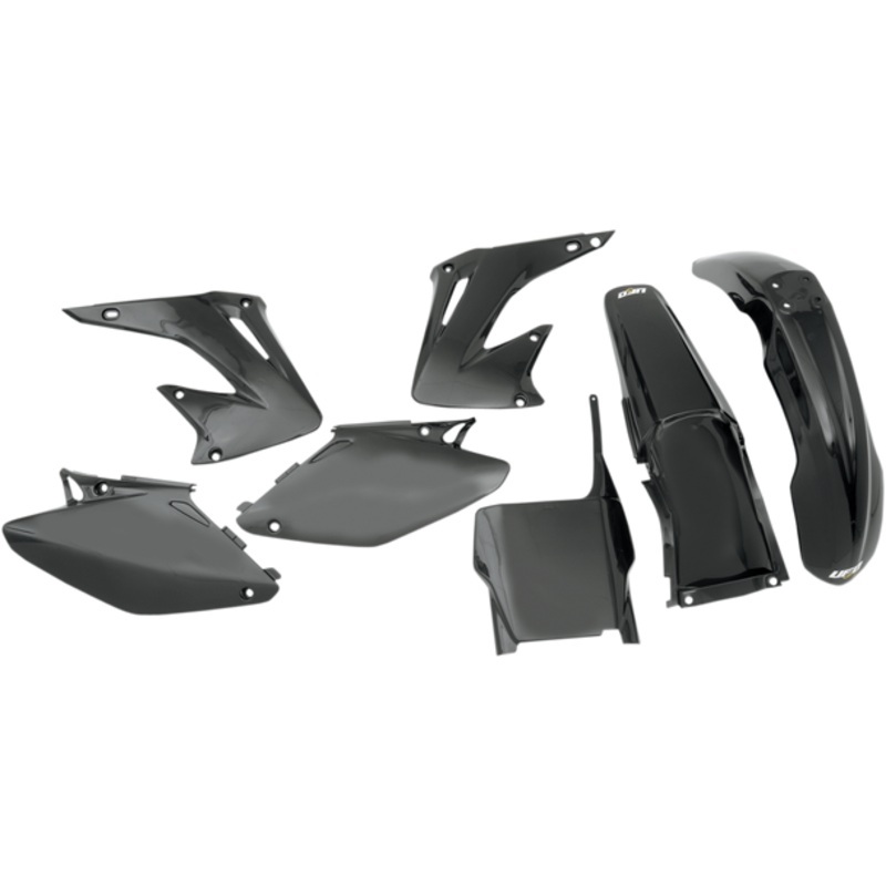 UFO Replacement Body Kit Black Honda HOKIT103-001Pre-drilled pieces mount easily to stock locations, Body kit includes front and rear fender, radiator covers, side panels and front number plate; OEM matches stock bike color, Easy bolt-on installation, Made