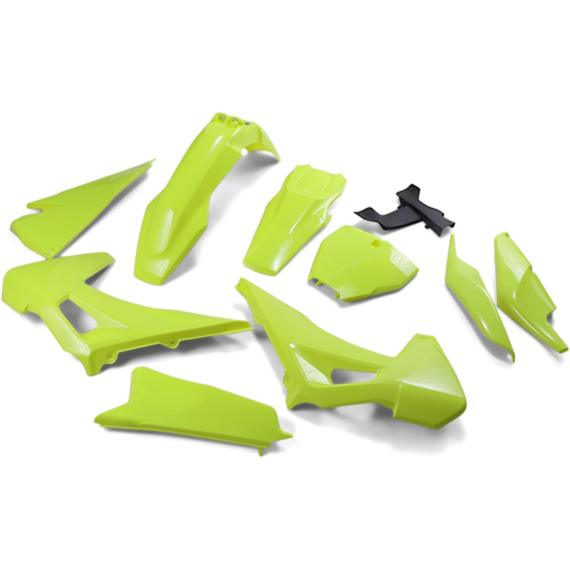 UFO Body Kit Fluorescent Yellow TC/FC HUKIT622DLFUPre-drilled pieces mount easily to stock, Body kit includes front and rear fender, radiator covers and side panels; OEM matches stock bike colors, Easy bolt-on installation, Made in Italy COLOR/FINISH: