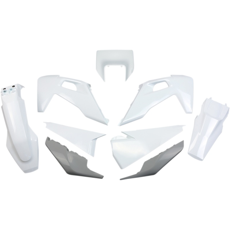UFO Body Kit White/Gray Husqvarna HUKIT623999Pre-drilled pieces mount easily to stock, Body kit includes front and rear fender, radiator covers and side panels; OEM matches stock bike colors, Easy bolt-on installation, Made in Italy FEATURES: