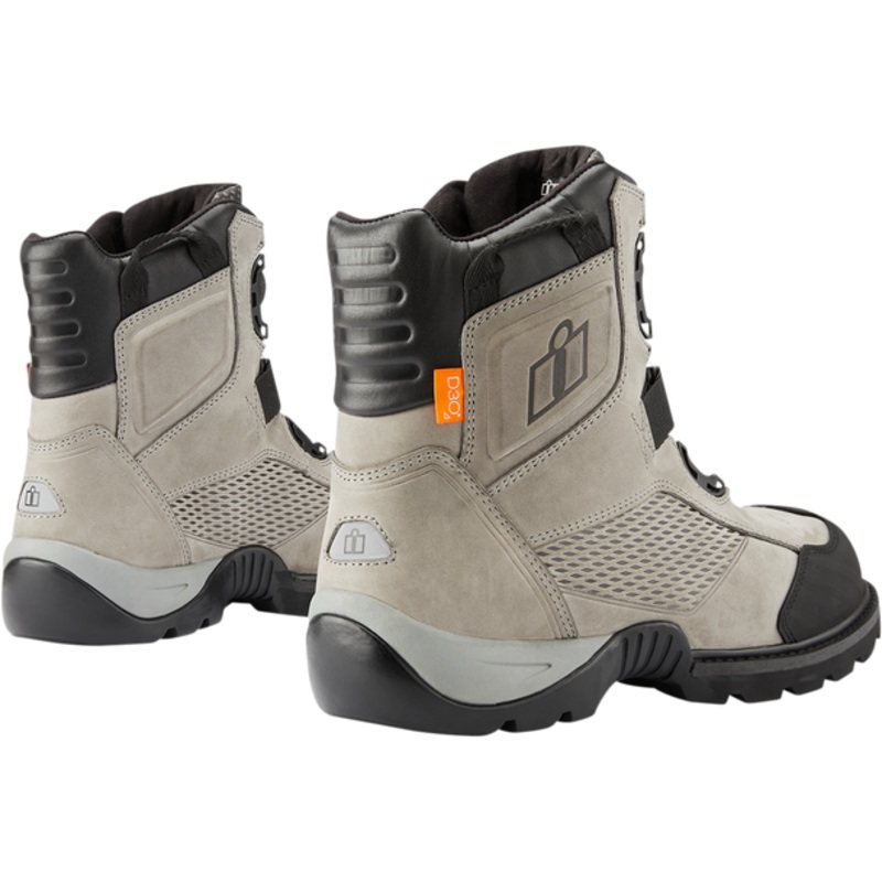 ICON Stormhawk Boots Gray Size 11 3403-1180Premium leather uppers feature a water-resistant finish, Breathable eVent waterproof liners help keep feet dry, Highly lugged oil/ slip-resistant rubber outsoles provide peak motorcycle performance, Open-cell poly