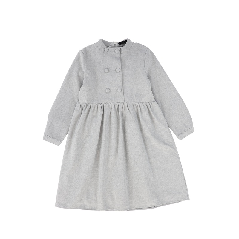 C14161-WOOL BUTTON WAISTED DRESS-Light Grey