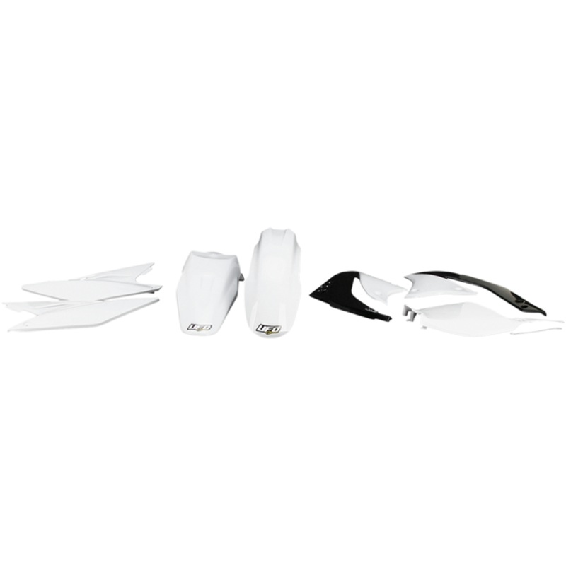 UFO Replacement Body Kit White/Black KXF450 KAKIT211-047Pre-drilled pieces mount easily to stock locations, Body kit includes front and rear fender, radiator covers, side panels and front number plate; OEM matches stock bike color, Easy bolt-on installatio