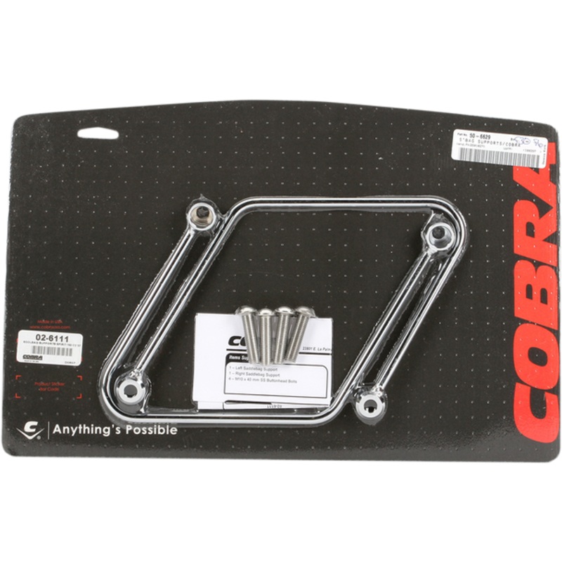 COBRA Saddlebag Supports 02-6111Keep throw-over saddlebags from getting tangled in the rear wheel, Attach to existing mounting points for easy installation; custom-fit to each bike, Made of thick steel tubing bent to fit each bike model and then polished a