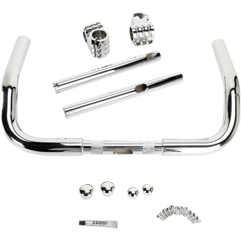 Innovative bars present the ultimate in rider personal adjustment and fit, Unique “Klamps” allow control/grip portions of the handlebar to be adjusted in several directions; rider can tailor to his/her exact liking, Bar sections are manufactured from DOM tubing, ‘Klamps’ are machined from 6061 billet aluminum, all hardware is stainless steel, All feature a fully knurled riser clamp area for standard 5-1/4″ width 1 risers, All are drilled/slotted for wiring and bar end is notched for Throttle-By-Wire applications, All include chromed, billet aluminum, domed bar end plugs for a finished look, Works with HD OEM Heated Grips, Made in the U.S.A.