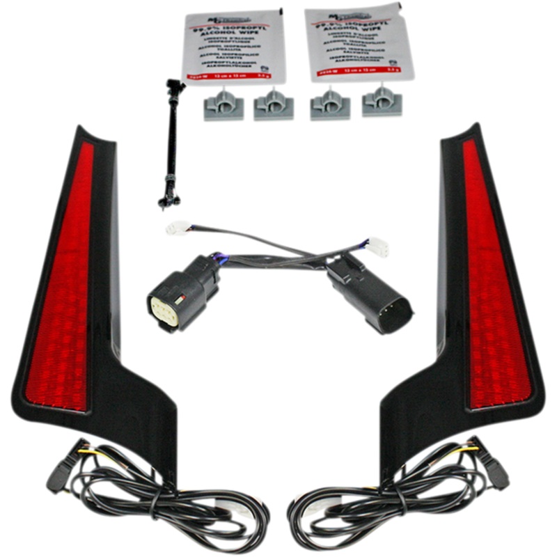 CUSTOM DYNAMICS Fascia LED Light Panels Black/Red CD-FASCIA-SS6RB45 super bright dual intensity red LEDs on each side illuminate to function as additional running brake lights, Units adhere to each side of the rear fender fascia with double sided tape, Chi