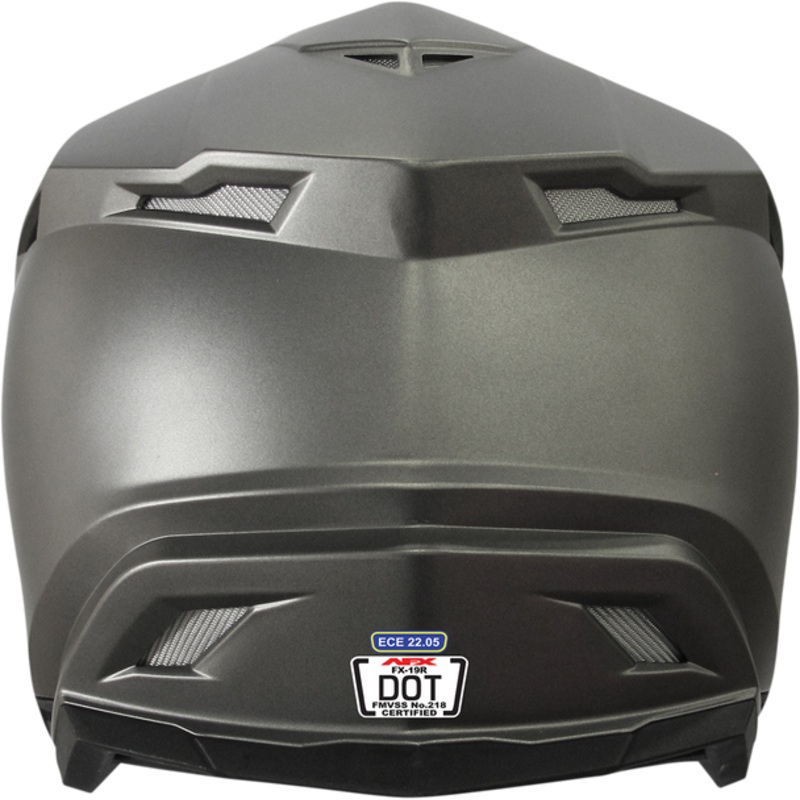 AFX FX-19R Helmet Frost Gray XS 0110-7051Aerodynamic shell design constructed using advanced poly-alloy plastic for light weight and strength, Hypoallergenic and antimicrobial nylon liner and cheek pads are removable and washable, 24 points of ventilation