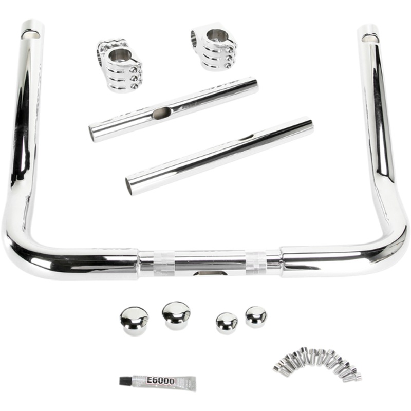 Innovative bars present the ultimate in rider personal adjustment and fit, Unique “Klamps” allow control/grip portions of the handlebar to be adjusted in several directions; rider can tailor to his/her exact liking, Bar sections are manufactured from DOM tubing, ‘Klamps’ are machined from 6061 billet aluminum, all hardware is stainless steel, All feature a fully knurled riser clamp area for standard 5-1/4″ width 1 risers, All are drilled/slotted for wiring and bar end is notched for Throttle-By-Wire applications, All include chromed, billet aluminum, domed bar end plugs for a finished look, Works with HD OEM Heated Grips, Made in the U.S.A.