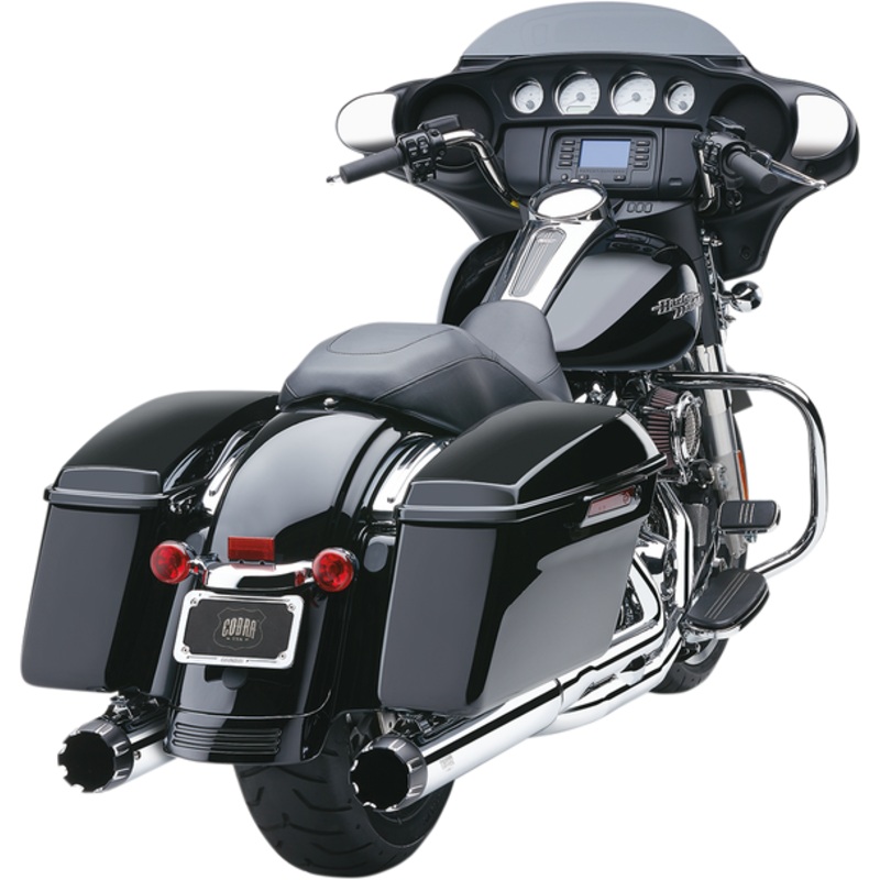 COBRA 4" Mufflers for '95-'16 FL Chrome 6266The same sound as Cobra's original Neighbor Hater, but in a more sophisticated design, Its machined, dual-cut tip gives this muffler a high-class look to match its roar, Cobras Neighbor Hater mufflers boast a sou