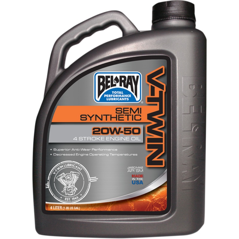 BEL-RAY V-Twin Semi-Synthetic Oil 20W-50 4 L 96910-BT4Synthetic ester blended with select synthetic and petroleum components, High film strength improves component protection, High viscosity index provides stable viscosity over wide temperature range, Impr