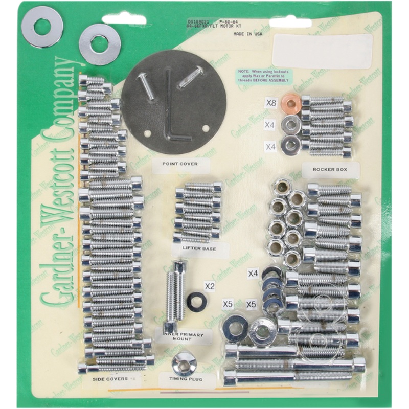 GARDNER-WESTCOTT Motor P-80-84Motor sets include cam cover, primary cover, transmission side cover, oil hose cover, lifter base, rocker box, front inner primary, washer, motor and transmission mount bolts, Side cover sets include cam, primary, oil hose cov