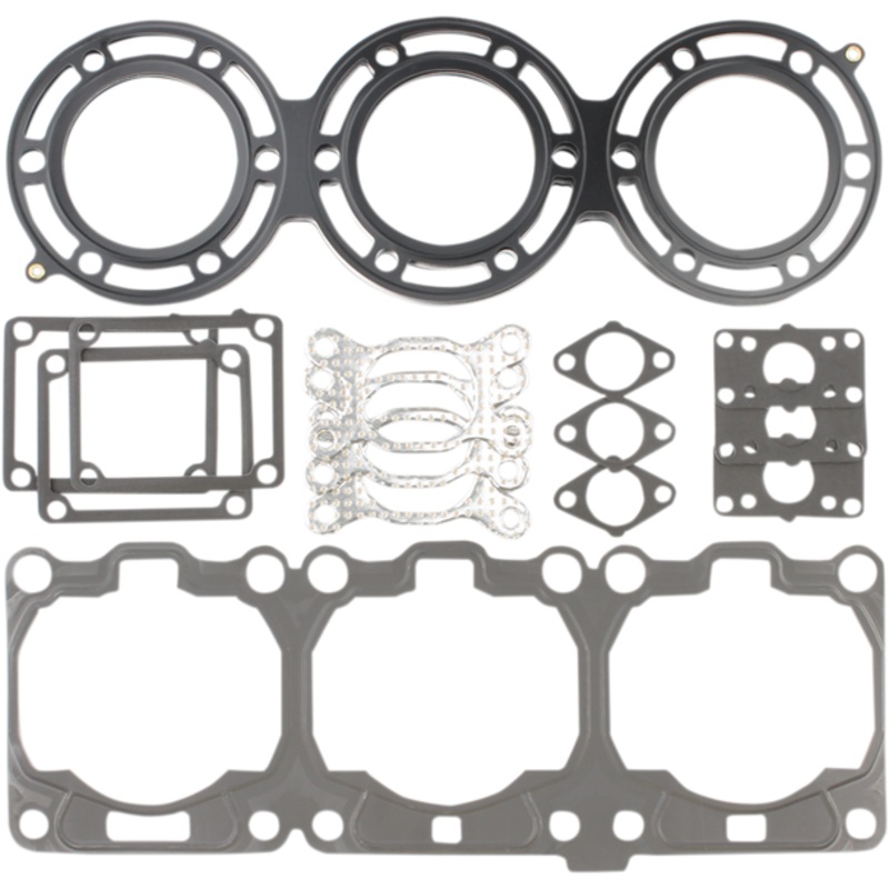 Top end gasket kits include correct base, head gasket and cylinder O-rings as well as other top end specific O-rings or seals needed for RR of top end, MLS head gaskets promote an even torque load across the gasket sealing surface, providing less bore distortion and better piston ring seal for more power, 4-stroke head gaskets are made to perform on todays highest-output 4-stroke naturally aspirated and boosted machines, utilizing a multi-layered steel design with the outer layers being embossed and coated with a Viton rubber coating; these head gaskets are designed to meet the demands of today’s high-horsepower, high-cylinder-pressure engines, EST (Extreme Sealing Technology) gasket kits include embossed stainless steel head, base and rocker gaskets covered with a proprietary rubber material, Head gasket material allows heat to be drawn away from the combustion ring and dissipated evenly across the gasket surface to eliminate hot spots and gasket failure, Made in the U.S.A.