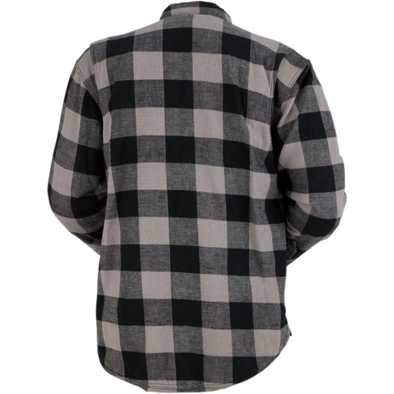 Z1R Duke Flannel Shirt Gray/Black Medium 3040-2546Thick 100% cotton flannel chassis, Full-length polyester mesh liner wicks moisture, Metal snap and concealed zipper front closure, Extended length jacket tail, Expanded shoulder gussets for increased mobili