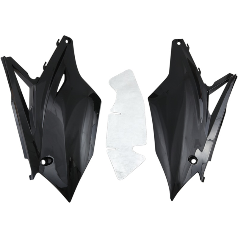 UFO Side Panels Black KXF KA04737-001OEM matches stock bike colors, Pre-drilled for easy bolt-on installation, Made in Italy PRODUCT NAME: