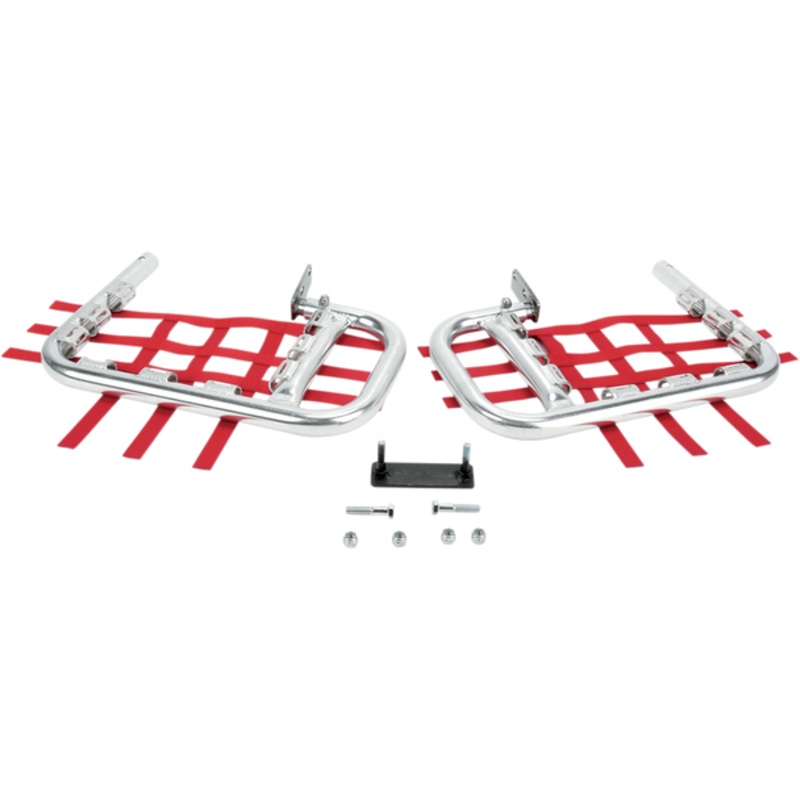 DG PERFORMANCE Nerf Bars TRX250EX Natural/Red 60-2500The latest in nerf bar technology combines lightweight aluminum tubing with high-strength steel brackets for the ultimate nerf bar, 1-1/4" alloy tubes are heli-arc welded at the joints, 4-gauge steel mou