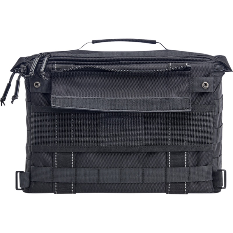 UV-treated 1680-denier ballistic nylon exterior resists moisture and fading , Strong, flexible EVA foam panels inside main compartment add structure and durability, MOLLE system on exterior provides options for attaching accessories and extra gear , One main and two secondary compartments are secured with rustproof nylon zippers, Zippered clamshell cover on main compartment locks closed with two 1.5-inch wide (36mm) reflective polyester straps and Duraflex quick-release buckles , High-vis orange interior lining makes spotting contents easier, 10 wide x 8 deep (254mm x 203mm) zippered pocket on clamshell top provides fast access to maps, smart phones, and other essentials , Two-piece mounting yoke with adjustable hook and loop panel fastens to both bags with extra-large, heavy-duty nylon zippers, Universal fit works with a variety of aftermarket saddlebag supports, Multiple D-rings and MOLLE points on bag exterior provide options for carabiners/bungee cords, Hidden cable port into main compartmentperfect for charging devices , Waterproof nylon rain covers with elastic gathers and drawstring closure provide extra protection in extreme conditions