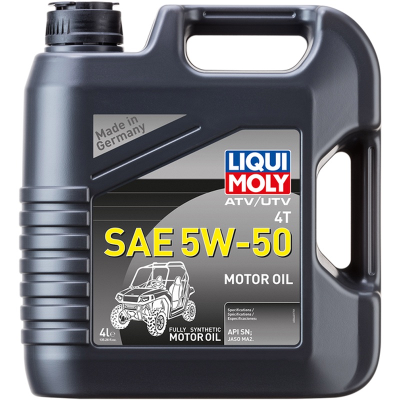 LIQUI MOLY ATV/UTV 4T Engine Oil 5W-50 4 L 20214High-performance motor oil based on synthetic technology, Ensures maximum performance and protection of the engine under all operating conditions, Optimum lubrication, outstanding engine cleanliness, excellen