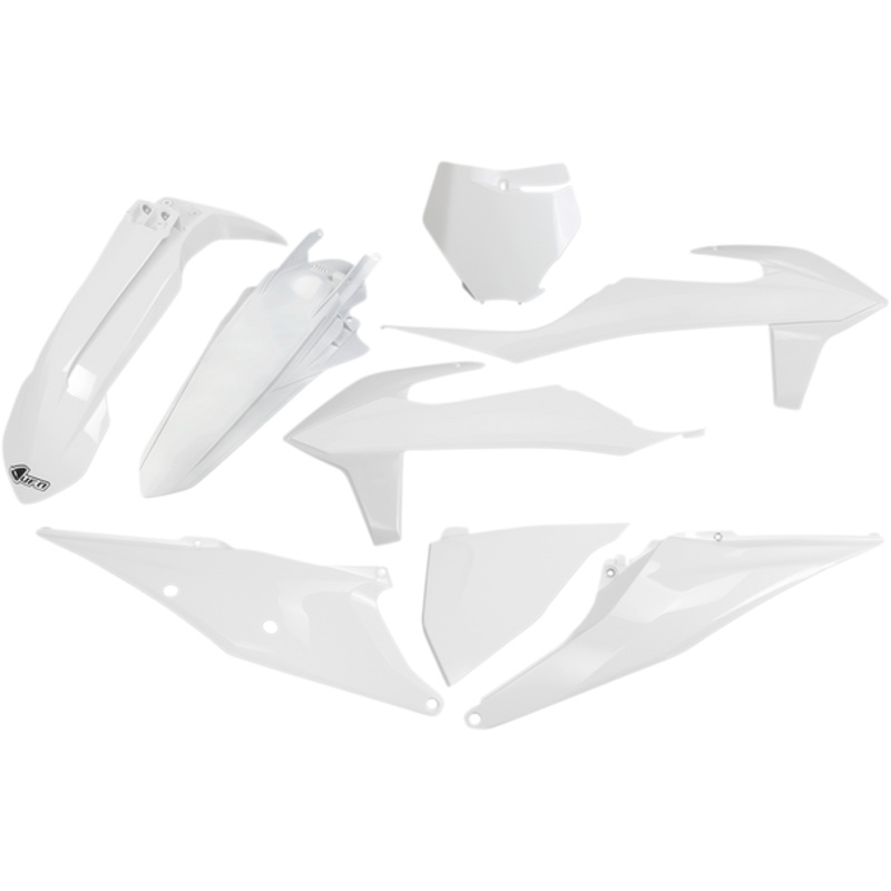 UFO Replacement Body Kit KTM White KTM KTKIT522042Pre-drilled pieces mount easily to stock locations, Body kit includes front and rear fender, radiator covers, side panels and front number plate; OEM matches stock bike color, Easy bolt-on installation, Mad