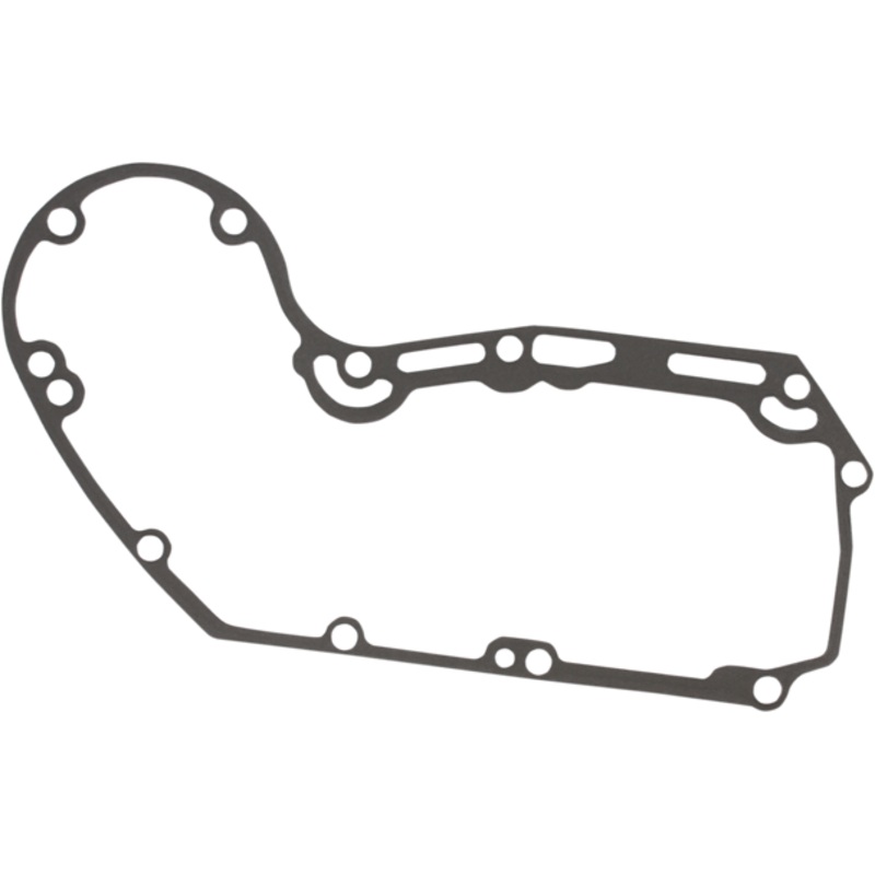 Clutch cover gaskets are made form an AFM Material which is a chemically blown, compounded nitrile synthetic rubber bonded to an aluminum core, Aluminum core gives the gasket strength for a superior seal and prevents the gasket from weeping or crawling out in today’s engine cases with limited sealing surfaces, No sealants required for installation, Save service time as AFM will not stick to the engine case making replacement quick and easy, no more scraping, Made in the U.S.A., AFM is a compounded nitrile synthetic rubber bonded to an aluminum core with a high temperature resistance of more than 250 F; it has an 85% recovery while maintaining a strong torque retention, No gasket sealants or silicon bead is required, re-torque is also not required