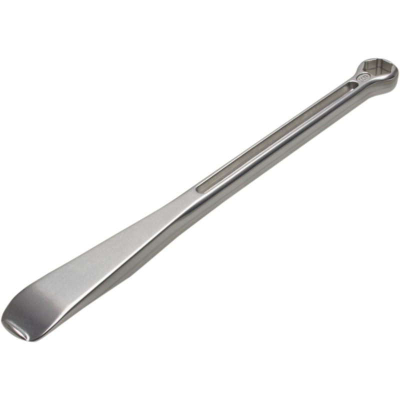 MOTION PRO T-6 Tire Lever Tool 10 mm/12 mm 08-0588Perfectly contoured tire lever on one end and a unique combination stepped 12 mm - 13 mm box end wrench on other end for turning rim lock nuts or a hex box wrench sized for axle nuts on other end, Hex ends