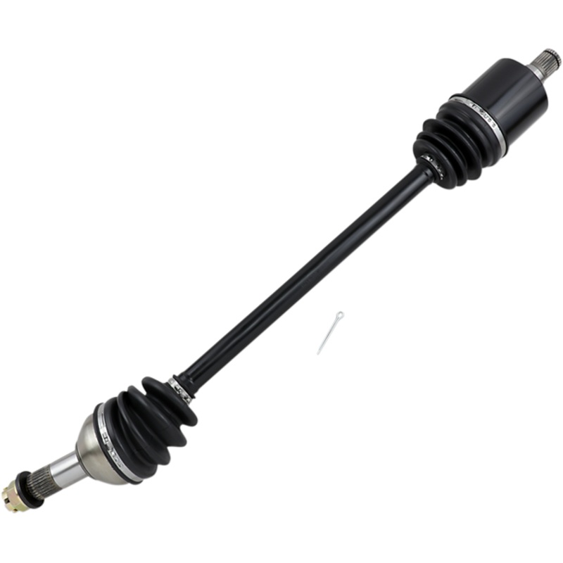 Precision machined and heat treated solid chromoly steel center shaft, cages, races and ball bearings up to 35% stronger, Highest quality, most reliable, and toughest constant velocity axles on the market, Manufactured in a state-of-the-art ISO9001 and TS16949 certified factory, Induction heat treated joints packed with high performance moly grease, Designed to withstand the most rigorous conditions and terrain, High-strength spring steel retaining clips (where required), Torture tested to failure to ensure maximum durability, Exceed OEM quality in fit, form and function, Secure stainless steel dust boot clamps, Fully assembled for easy installation, Precision rolled splines and threads