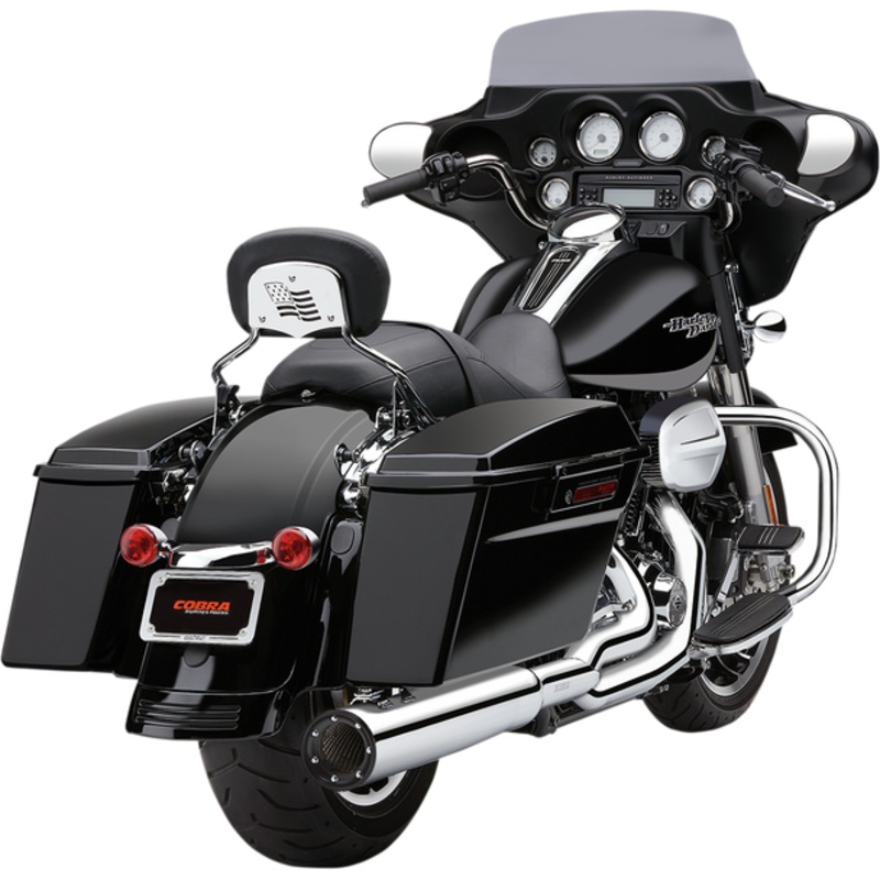 COBRA 2:1 Exhaust Chrome '09-'16 FL 6450The PowrFlo 2:1 exhaust system for modern Baggers increases power and torque, Real world performance gains matched by the perfect deep throaty rumble you expect from the a V-Twin power plant, Looks as good as it soun