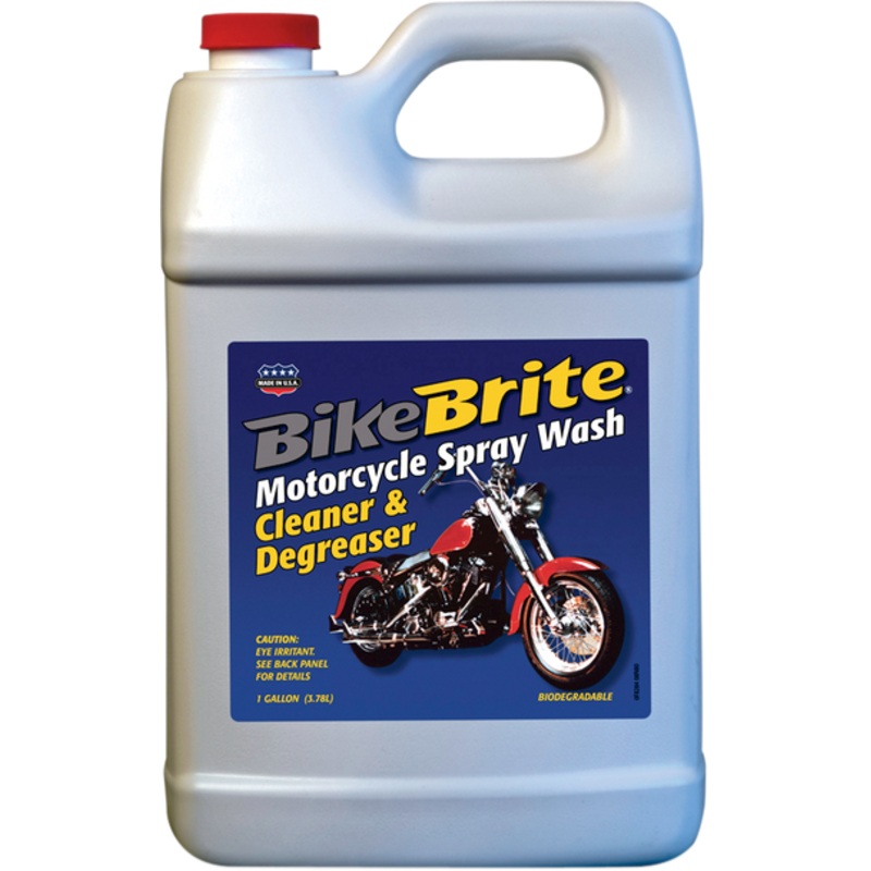 BIKE BRITE Spray Wash 1 U.S. gal. MC441GCleaning your bike is easier with biodegradable Bike Brite, Simply spray over areas to be cleaned and rinse immediately with a forceful jet of water, After proper rinsing, surfaces will feel smooth and squeaky clean,