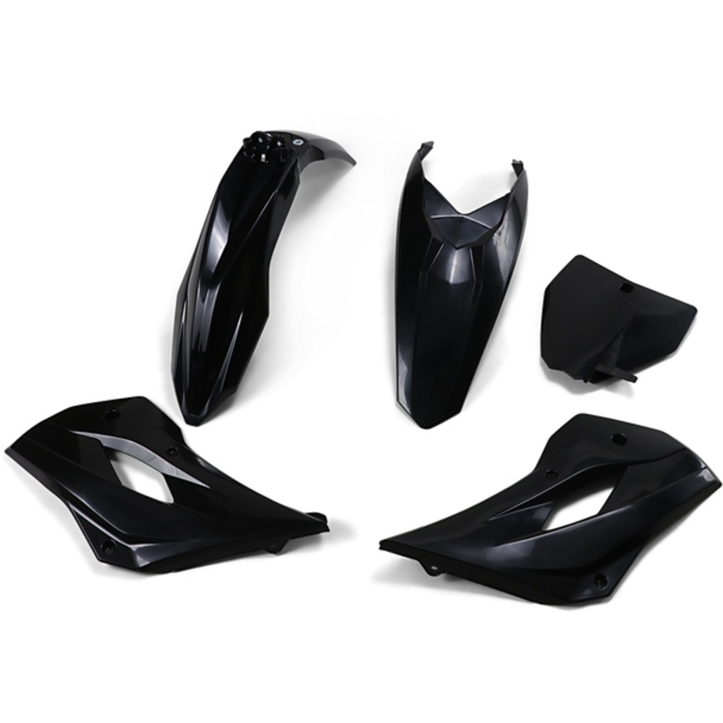 UFO Body Kit Black TC85 HUKIT619-001Pre-drilled pieces mount easily to stock, Body kit includes front and rear fender, radiator covers and side panels; OEM matches stock bike colors, Easy bolt-on installation, Made in Italy MOUNTING POSITION: