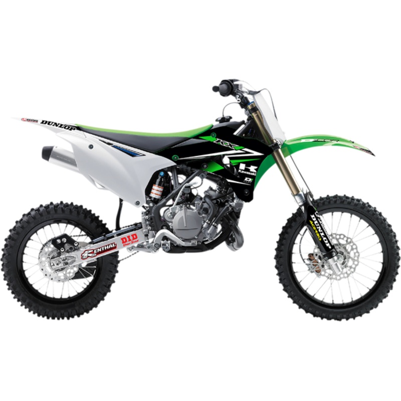 Includes graphics kit for radiator shroud, lower forks, swingarm, front and rear fender