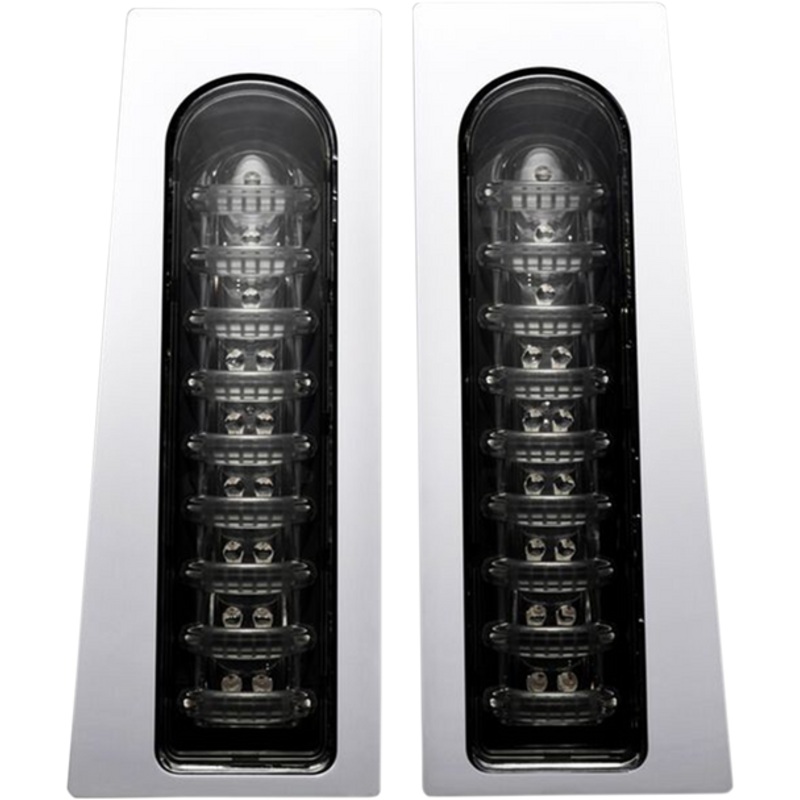 CUSTOM DYNAMICS Saddlebag Lights Smoke Chrome PB-FILL-S-C33 super bright automotive grade LEDs in nine running light tubes per unit, Easily installed with included adapters, Works with CVO Models IF painted filler panels are removed. LENS COLOR: