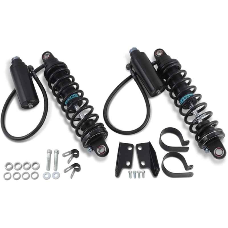 LEGEND SUSPENSION REVO ARC Remote Reservoir Shocks Standard Black 13" '14+ FL 1310-1886Available in Black, Gold and Clear Type III Hard-coat Anodize, Legend's touring specific spring rates produce superior ride quality and performance, REVO coils provide i
