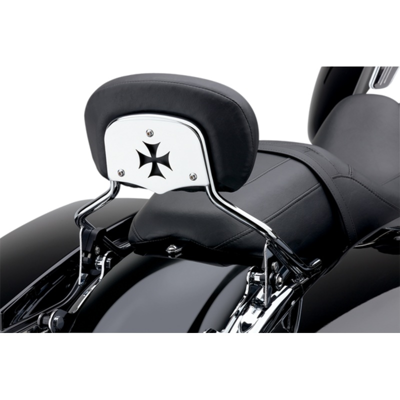 COBRA Mini Backrest Cross 602-5053Add flair to a Cobra backrest, Engraved with the Cobra logo, Polished, then finished with show chrome, Fit Cobra round or square sissy bars, Made in the U.S.A. MODEL: