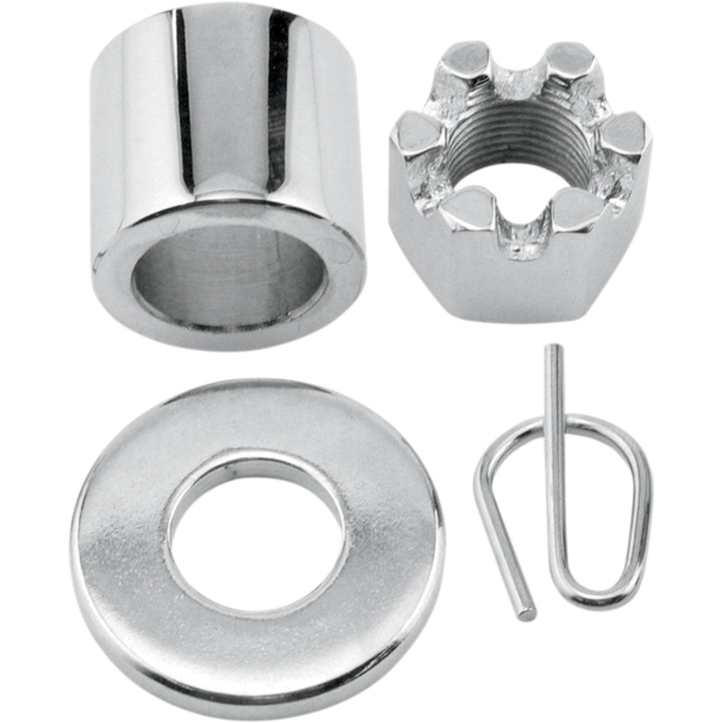 COLONY Axle Spacer Front Kit 00-06 FXST 2032-4Kits include polished/chrome-plated finish spacers, nuts and machined washers, Made in the U.S.A. COMPATIBILITY: