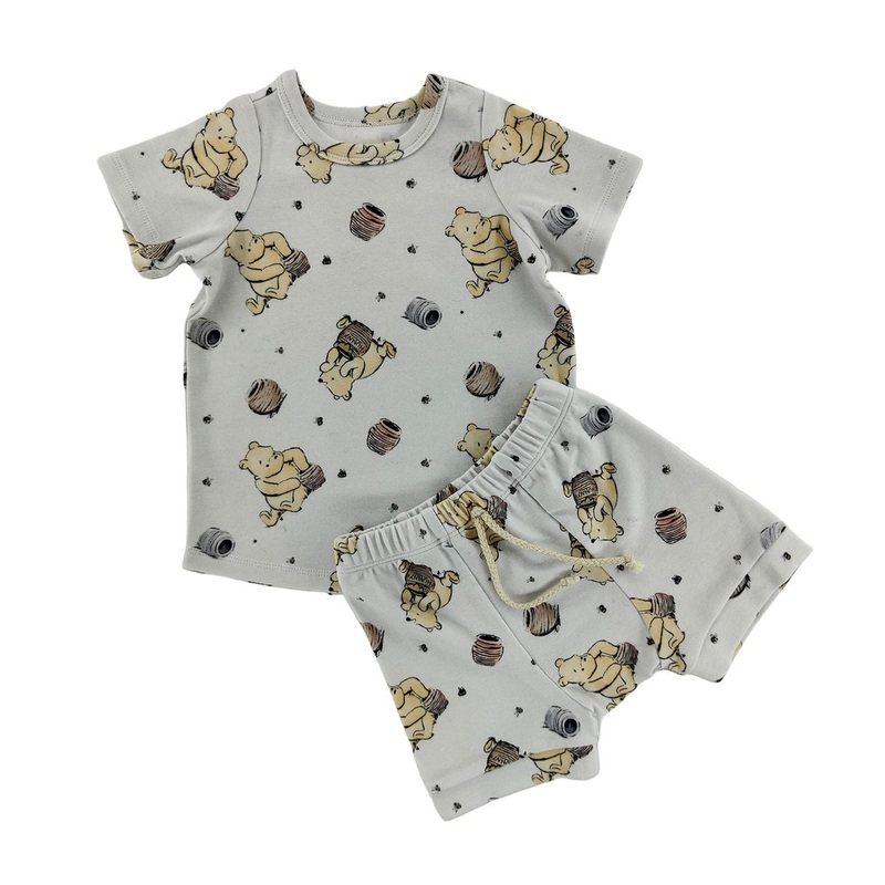True to size2 piece teeand shorts setSoft, stretchy fabricFull elastic waistband shorts95% Cotton 5% Spandex