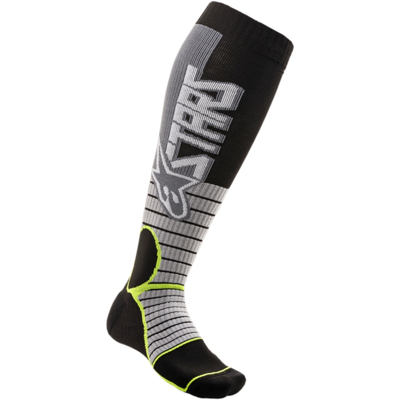 ALPINESTARS MX Pro Socks Gray/Yellow Medium 4701520-905-SMDesigned to be worn with Alpinestars range of Off-Road boots, the MX Pro Socks are breathable and comfortable, thanks to the reinforced padded support and the rib construction, which enables enhance