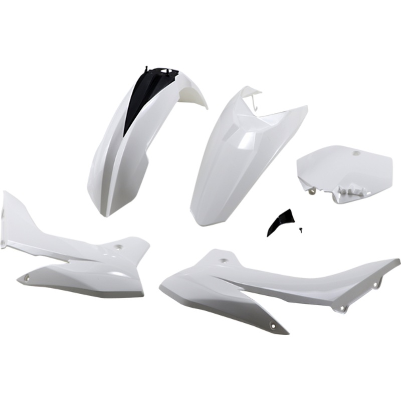 UFO Replacement Body Kit White/Black KTM KTKIT514-047Pre-drilled pieces mount easily to stock locations, Body kit includes front and rear fender, radiator covers, side panels and front number plate; OEM matches stock bike color, Easy bolt-on installation,