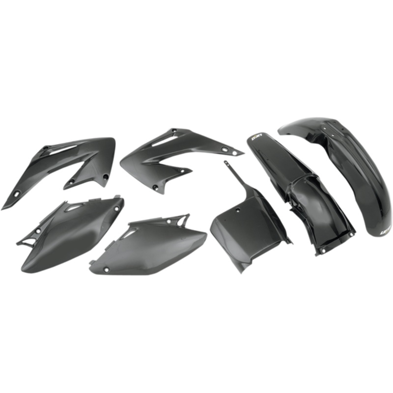 UFO Replacement Body Kit Black Honda HOKIT101-001Pre-drilled pieces mount easily to stock locations, Body kit includes front and rear fender, radiator covers, side panels and front number plate; OEM matches stock bike color, Easy bolt-on installation, Made